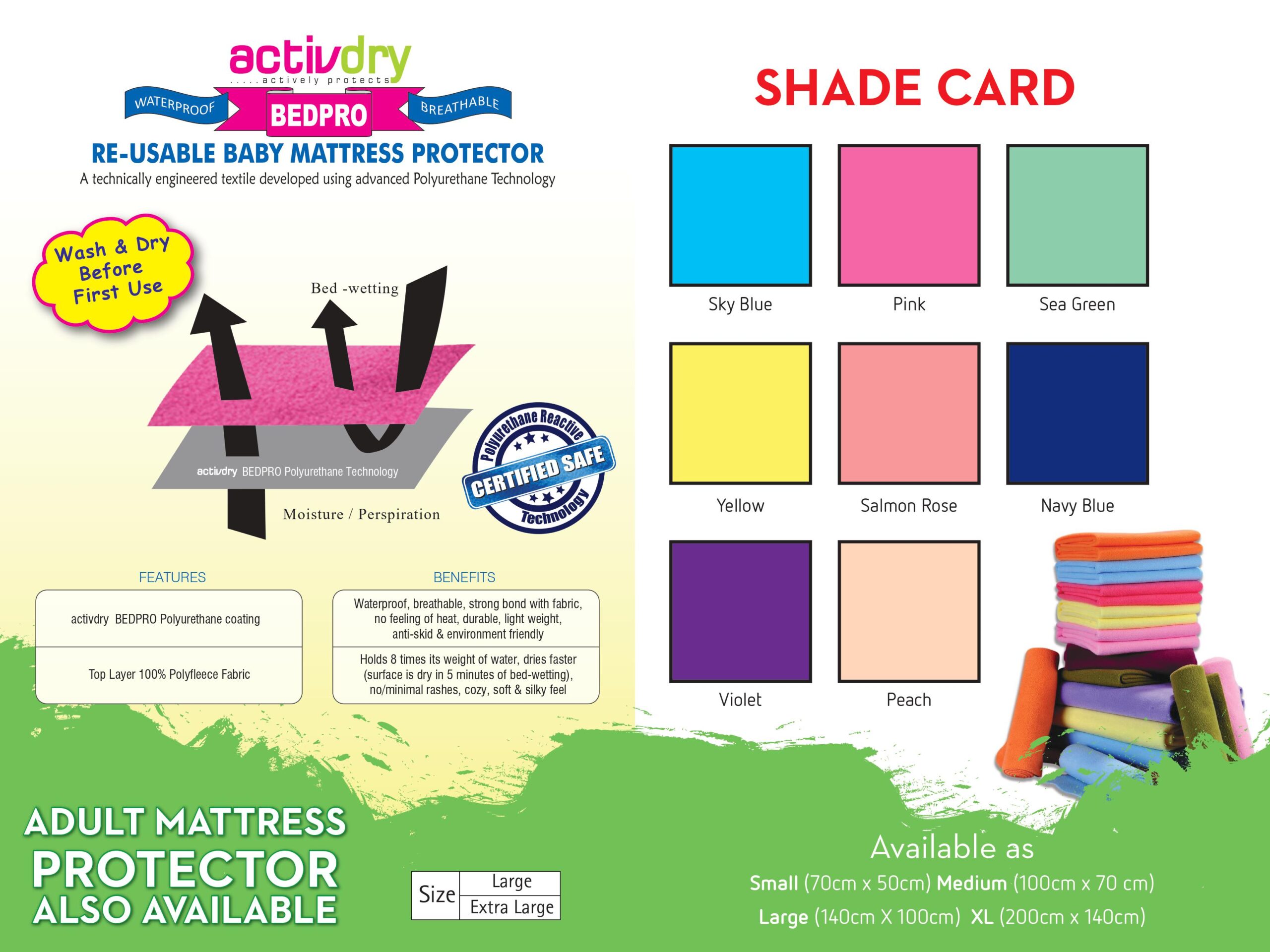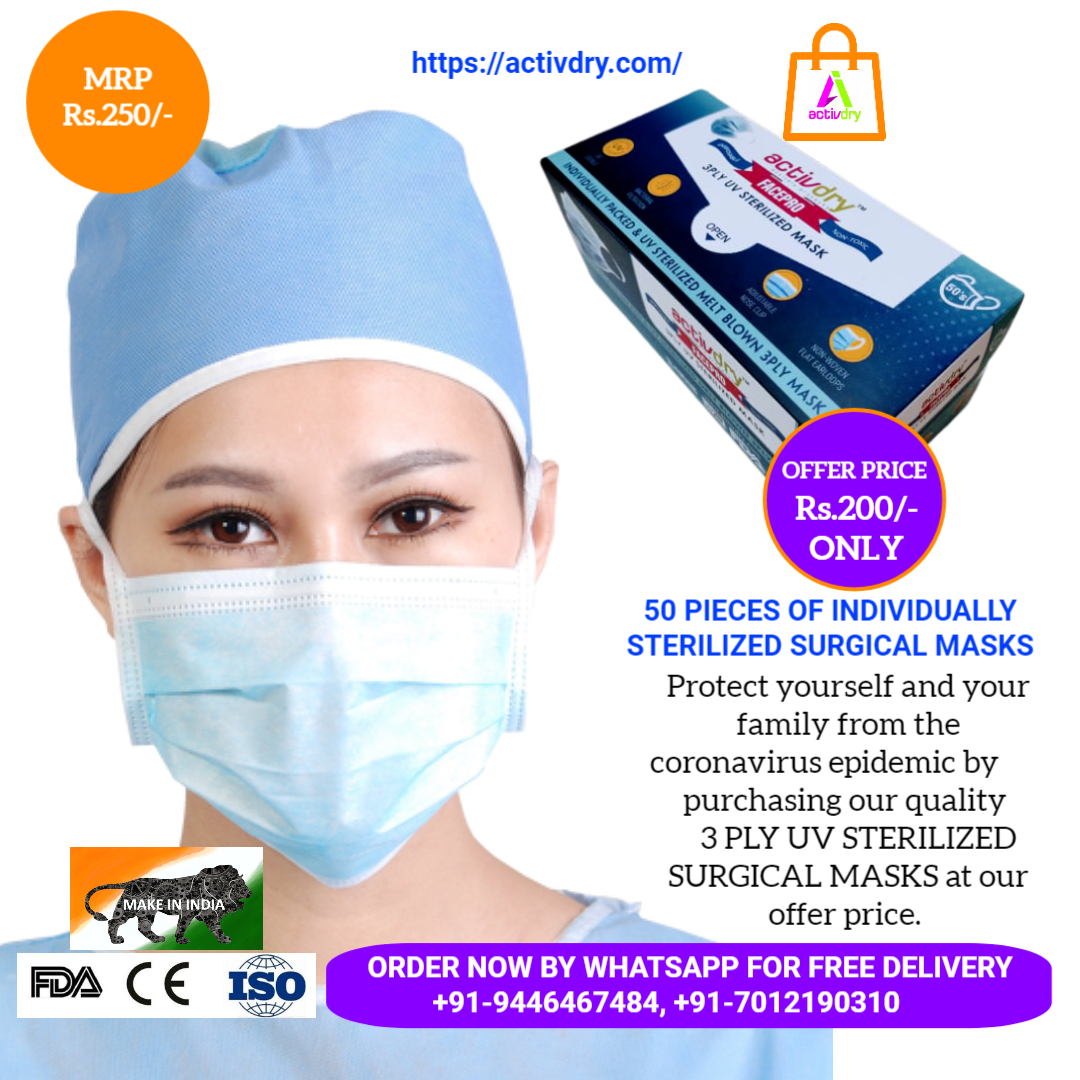 ActivDry International is the Indian partner of ActivDry International Sdn. Bhd. established in 2012 in Malaysia. We are manufacturers of REUSABLE BABY & ADULT MATTRESS PROTECTORS (UNDERPADS), REUSABLE CLOTH DIAPERS FOR BABIES & ADULTS as well as STERILE PACKED 3PLY SURGICAL MASKS. We are also dealers of all hospital furniture, equipment, devices, wheel chairs, stretchers etc. We are an ISO 14001:2015 certified company with USFDA, CE, GMP compliance.
